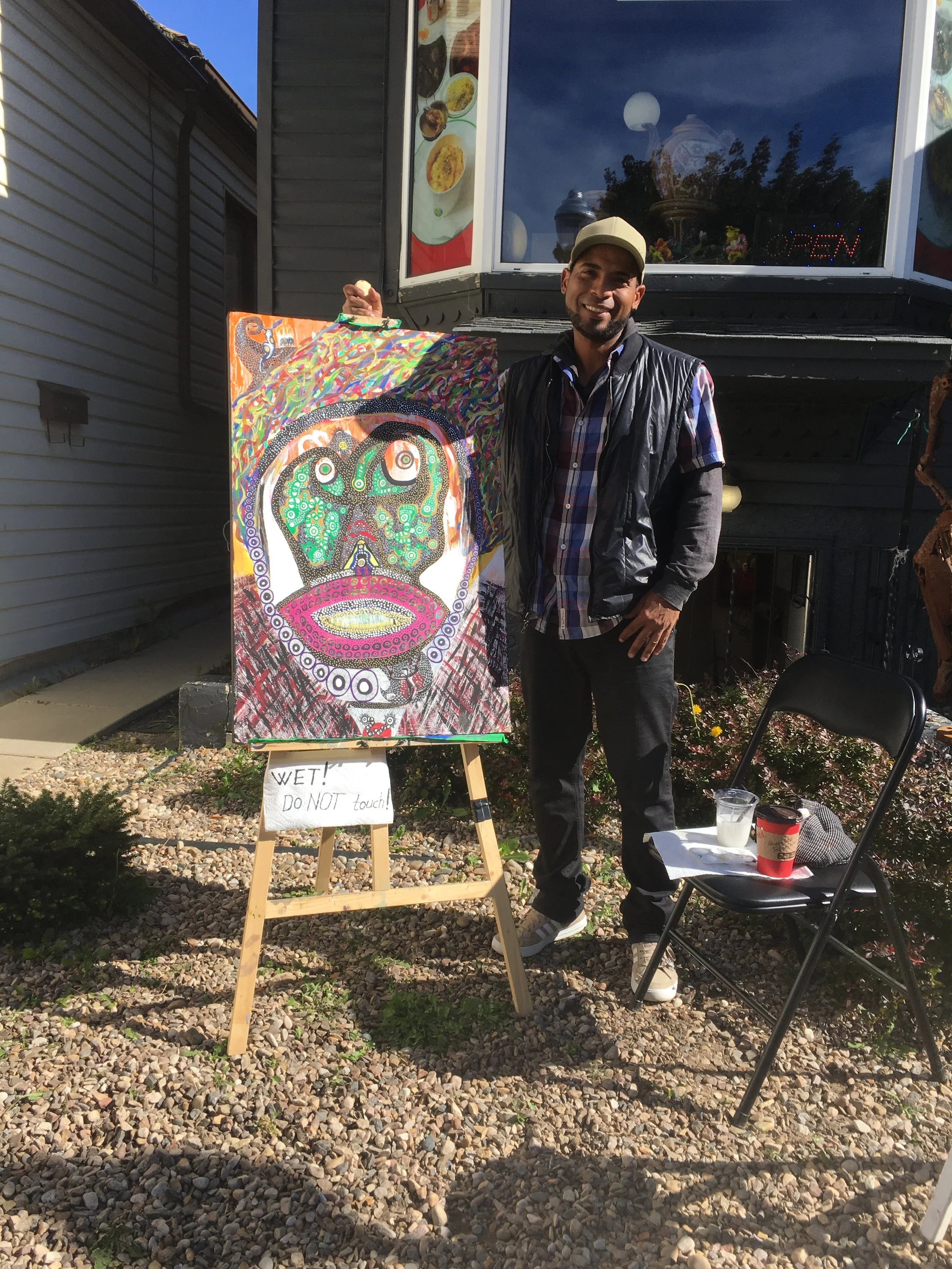 Another unique artist, another collaboration. I collaborated with Amaury to create art exhibits about peacefulness. He spent lots of time painting at Lotus and developed his art. He and I could not get along as the stress he was experiencing was too much for me to take in. I am not sure if he continues to paint, but I hope so.