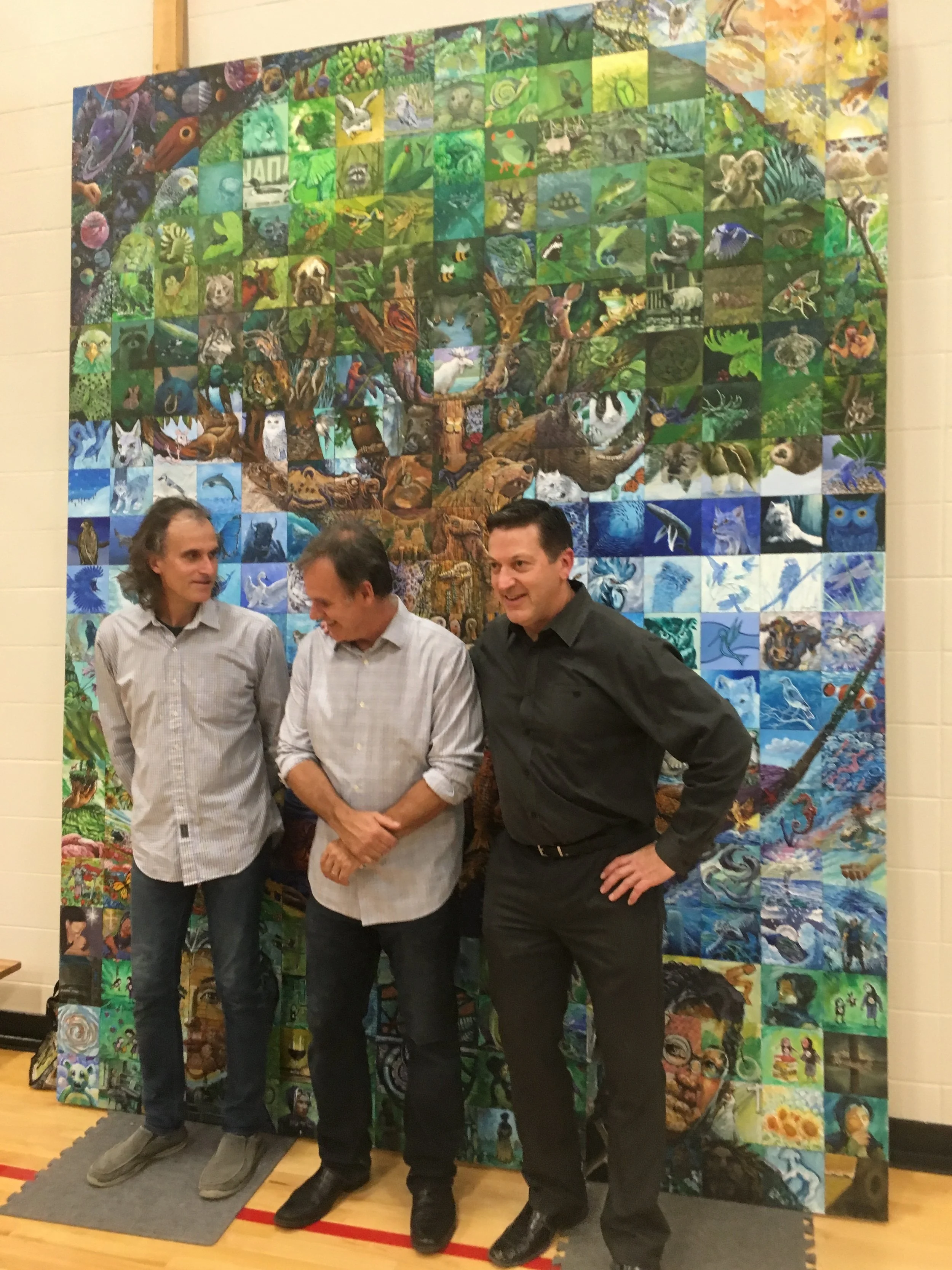 I love meeting new artists who are determined to create with a purpose. This was a fun collaboration I got to do with Local artist Phil Allan. Phil and his brothers had started to create mosaic murals. I made a little bird in a Tree of life project which was mounted in a school to inspire children to create more. It was a great project with a great opening party. Phil and his brothers continue to create murals and have also opened an art market called Night of Artists in Edmonton where local artists can exhibit. I love going to their art shopping nights at the local mall.